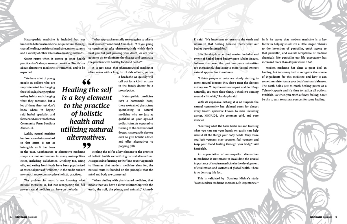 These stories and experiences were compiled into this publication with original photography and designs. The team hopes to bring awareness to the issues plaguing the black community.